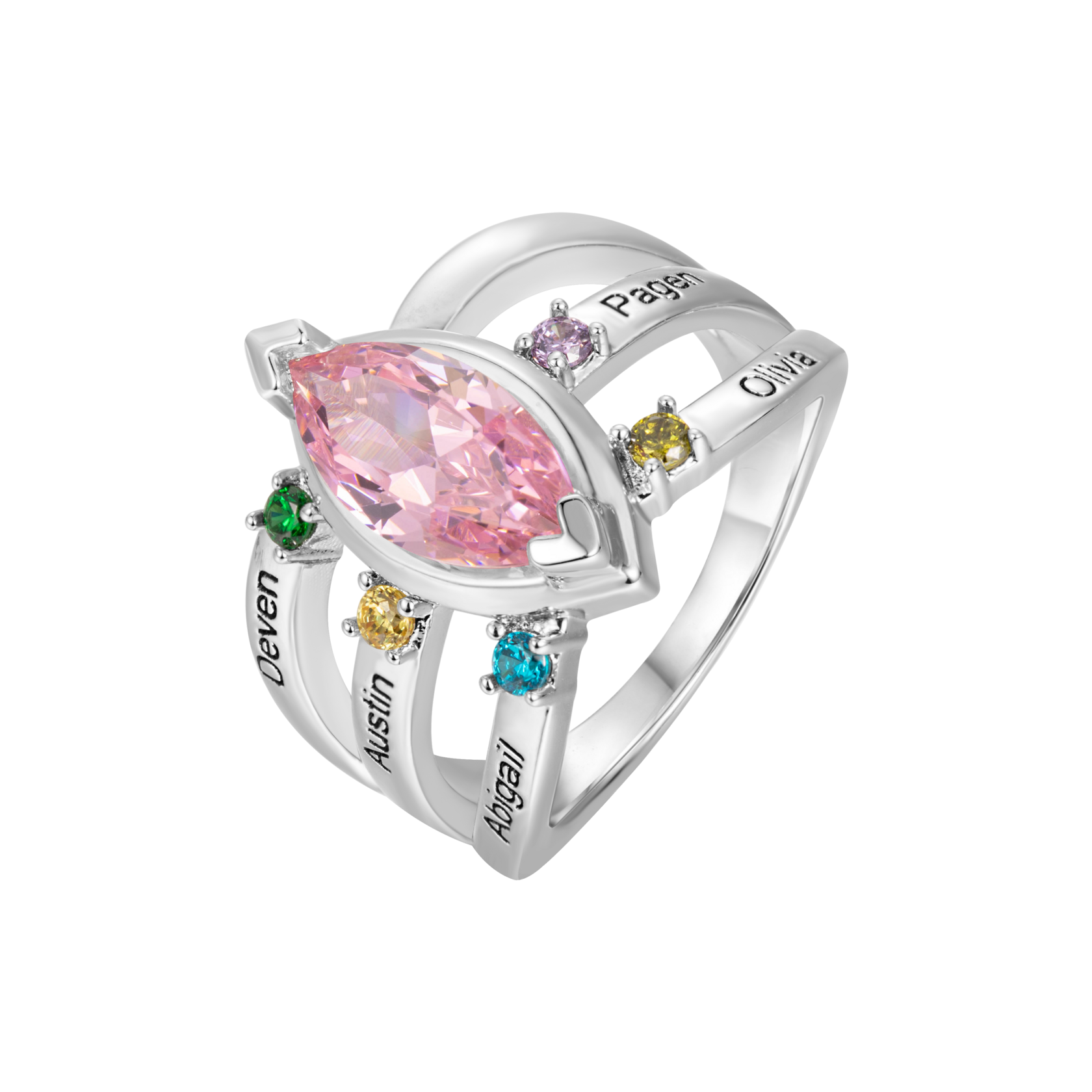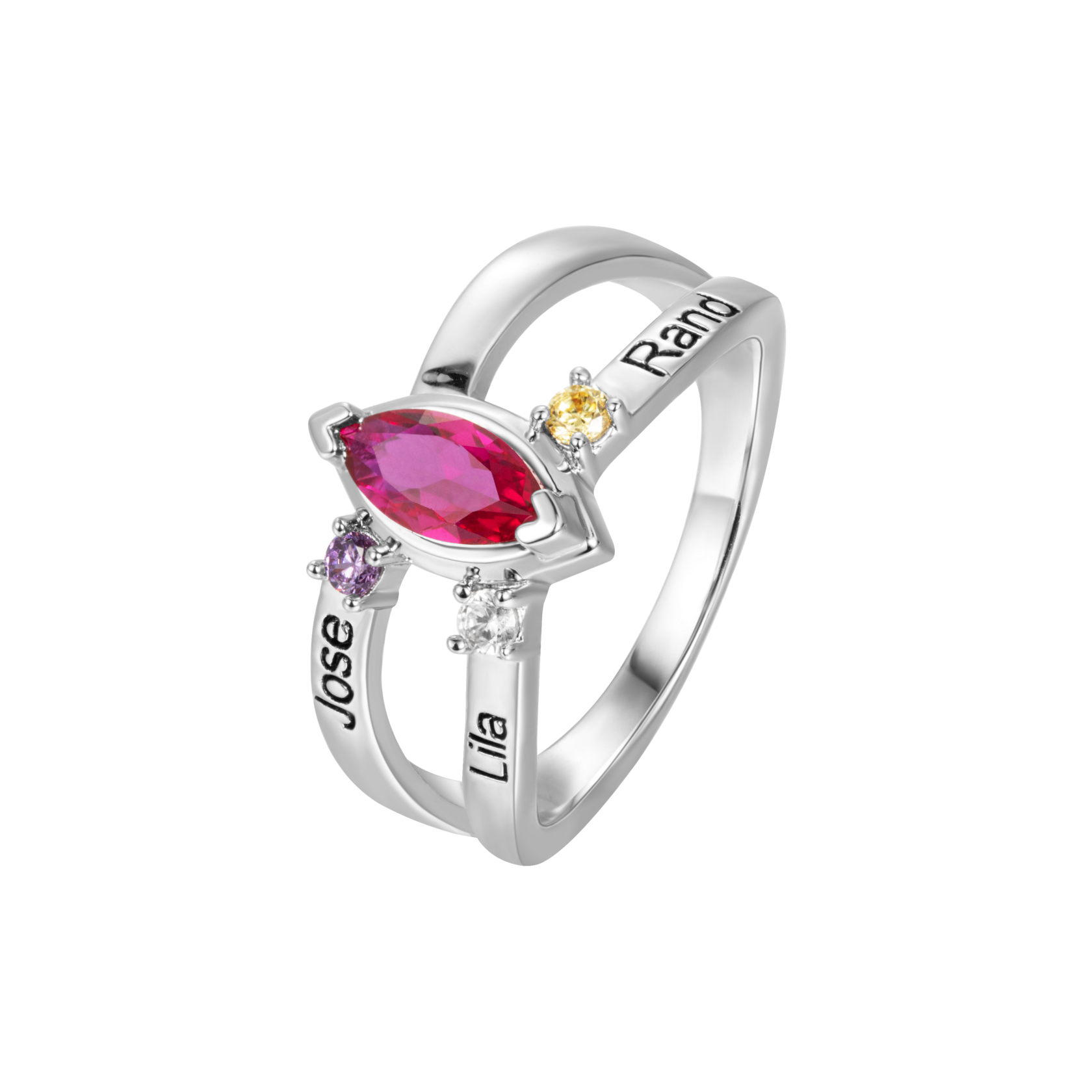 Custom 1-8 Names & Birthstones Marquise Ring, Birthstone Ring