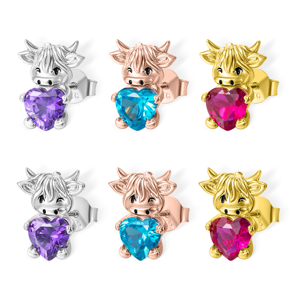 Custom Birthstone Highland Cow Necklace, Cow Necklace