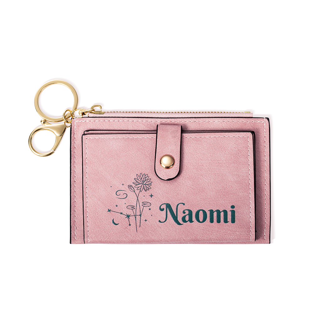 Personalized Zodiac Month Flower Mini Wallet with Name