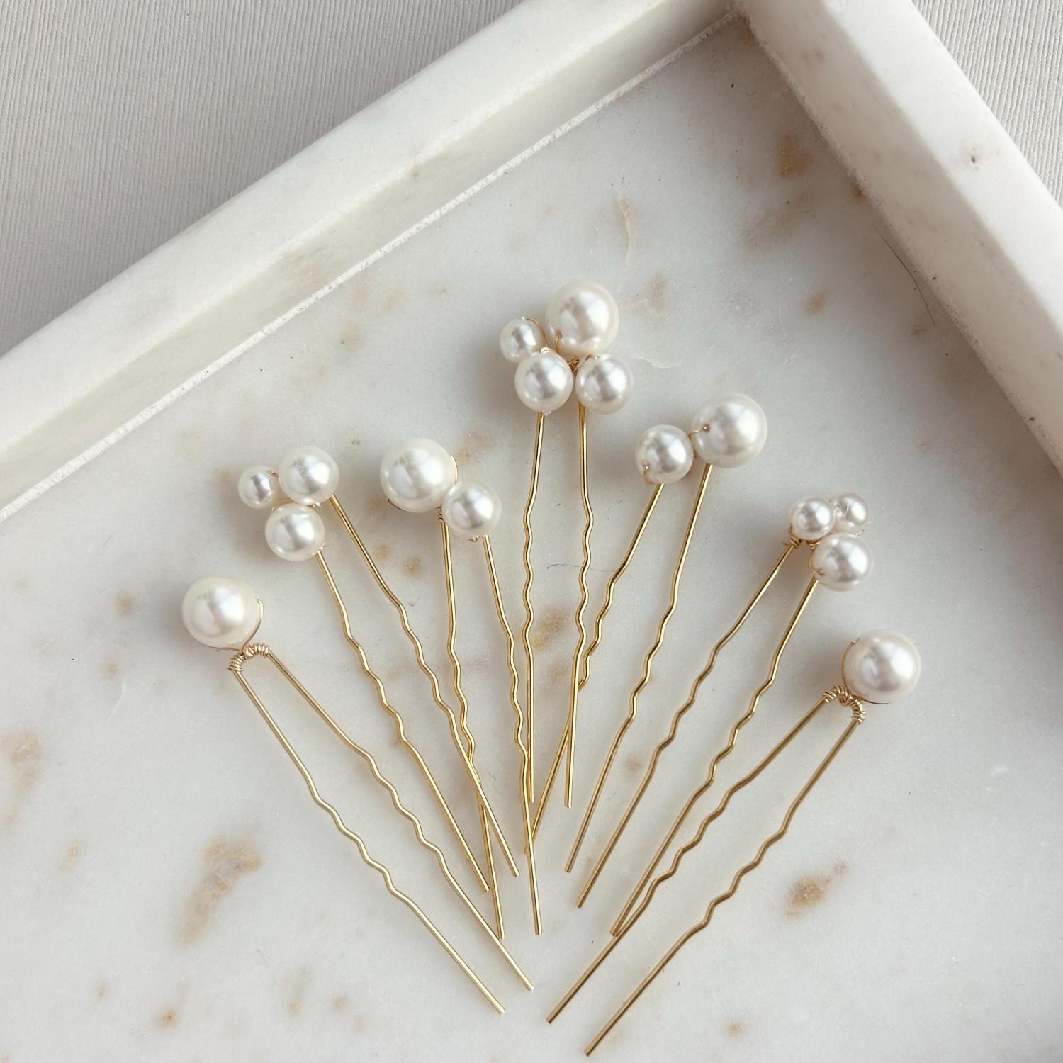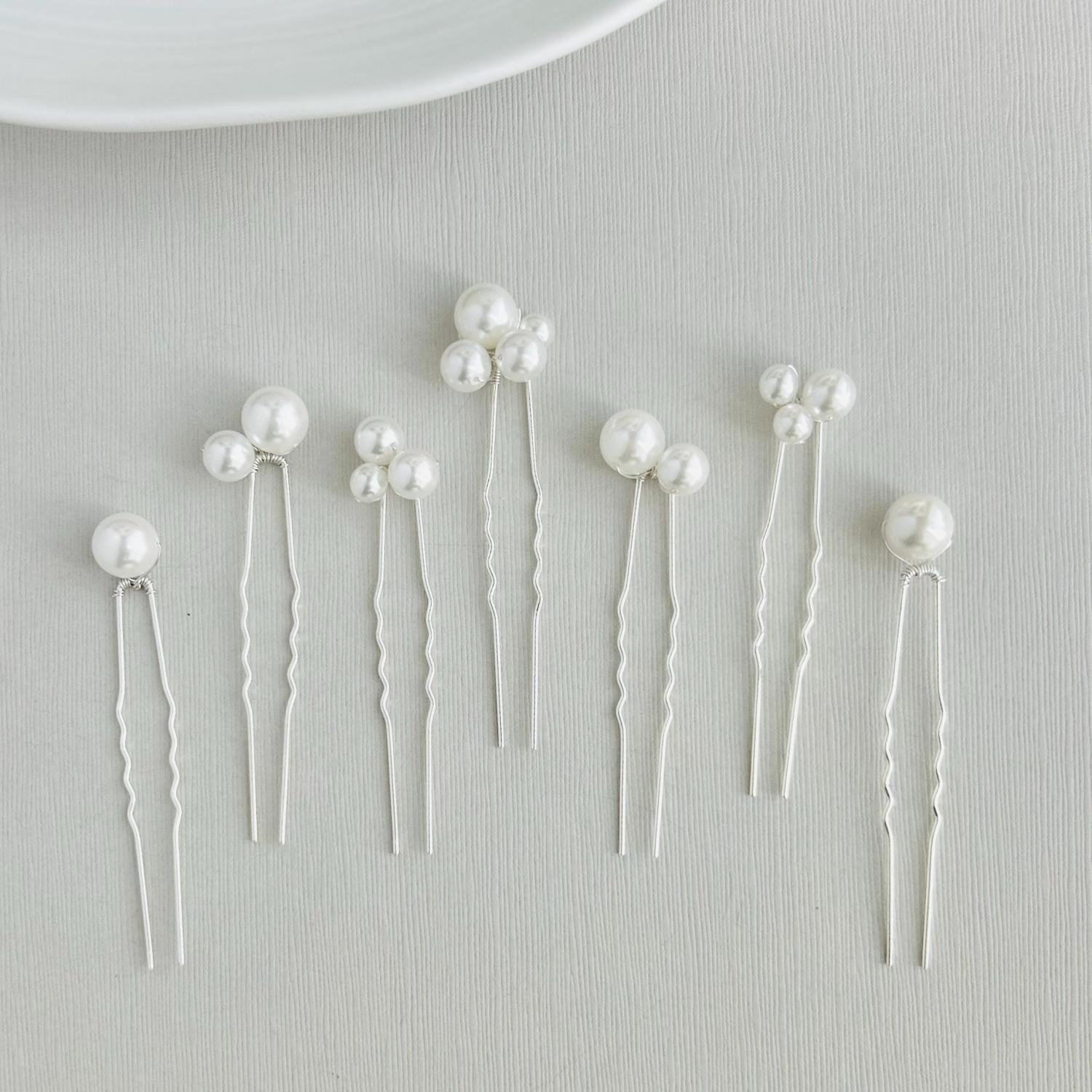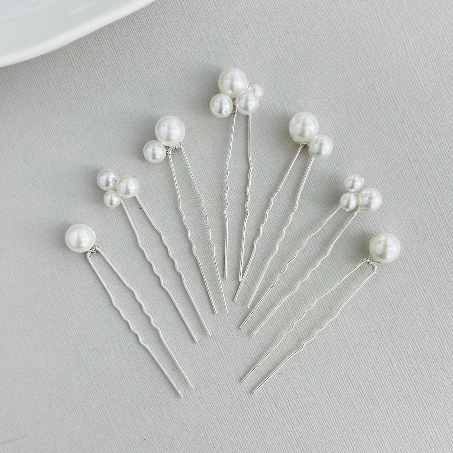 Set of 7 Elegant Hair Pins with Pearls – Perfect for Weddings and Special Occasions